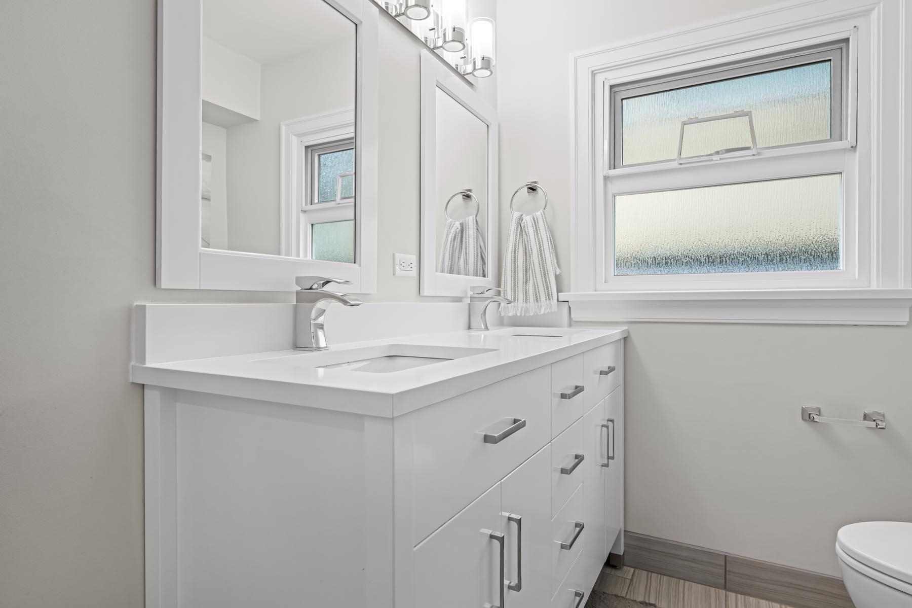 Impeccably renovated, this refined 3 bedroom, 1.5 bath residence delivers elevated living with an exceptional level of craftsmanship and care. Thoughtfully reimagined from the inside out, the home combines timeless design with extensive upgrades rarely found at this level. Significant infrastructure improvements include new perimeter drainage, new sump, new electrical and plumbing, new wall and ceiling insulation, high-efficiency Bosch heat pump; the list goes on and on. The interior showcases refinished hardwood floors, crown moulding, new window coverings. Outdoors, the fully fenced rear yard provides a private retreat complete with fabulous deck. A double garage with loft and convenient lane access adds versatility and valuable additional space.